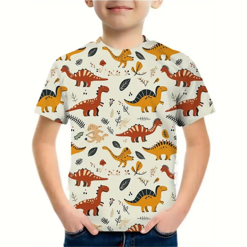 Children's clothing cartoon dinosaur 3D printing pattern children's men's and women's clothing boys' outdoor game T-shirt