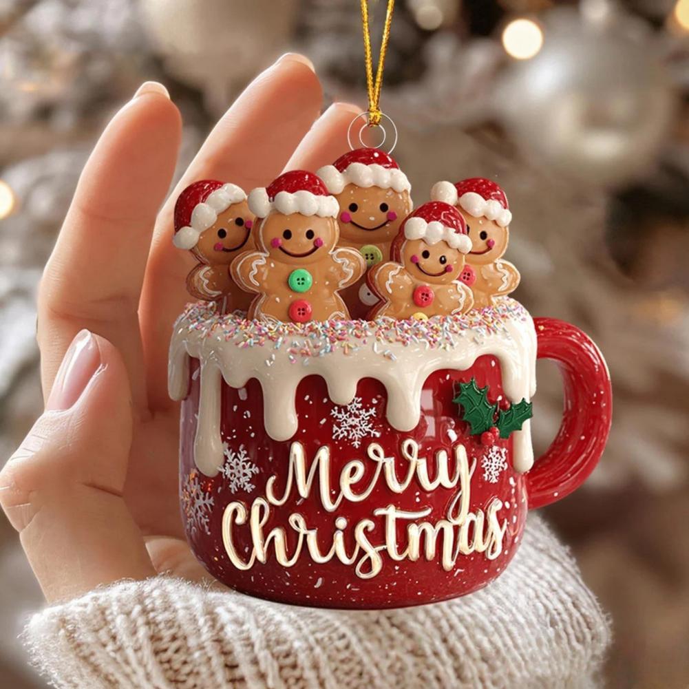 Christmas Pendant Mug Holly Leaves Decor Christmas Gingerbread Family Ornament Set with Personalized Customization Ceramic Mug