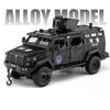 1:32 Dongfeng Mengshi Sabertooth Police Car Model Toy Sound Light Pull Back Shock Absorption Armored Vehicle Metal Toys for Kids