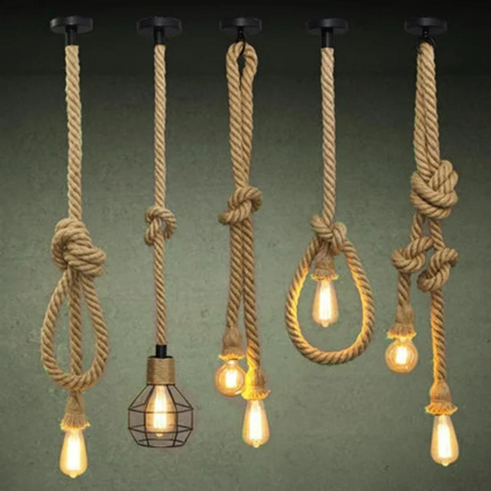 1/5/10Pcs Retro Vintage Rope Lamp Creative Country Edison Bulb Chandelier Decoration Home Vintage Hemp Rope Pendant Lamp