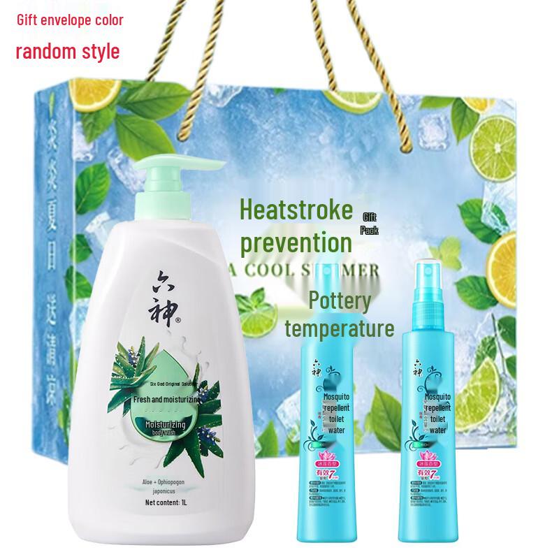 Experience summer refreshment with the Liu Shen Summer Essentials Gift Set. This collection includes a 1L Fresh Moisturizing Shower Gel, formulated with aloe vera for soothing and toning multiple skin types, alongside two 80ml bottles of Ice Lotus Spray Mosquito Repellent Floral Water to keep you cool and protected from bites. Perfect for a refreshing summer routine.