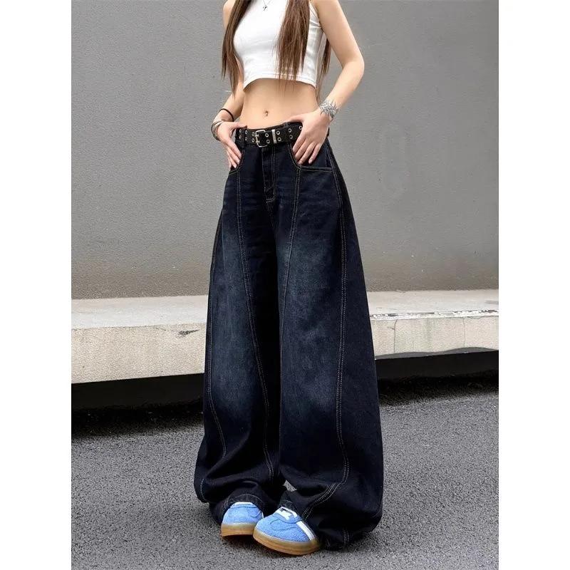 Women's American Vintage Embroidered Curved Blade Jeans High Street Washed Distressed Loose Wide Leg Pants