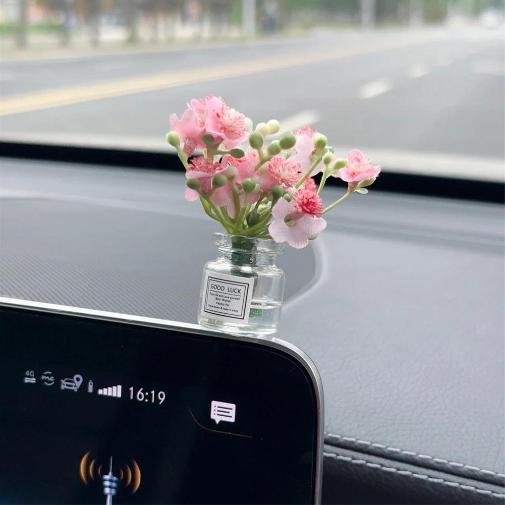 Mini Sakura Lavender Jasmine Car Ornaments Center Console Ornaments Vibrant Flowers Vase Glass Vase Micro Landscape For Gifts