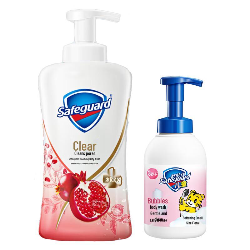 Experience a refreshing cleanse with the Safeguard Pomegranate Bubble Shower Gel (700g), offering a long-lasting fragrance and moisturizing benefits for adults. Complementing this is the Safeguard Kids Healthy Bubble Shower Gel (415g) in Soft Pink, designed for gentle care. This set provides thorough cleaning, hydration, and a soothing effect, suitable for most skin types (excluding sensitive skin).