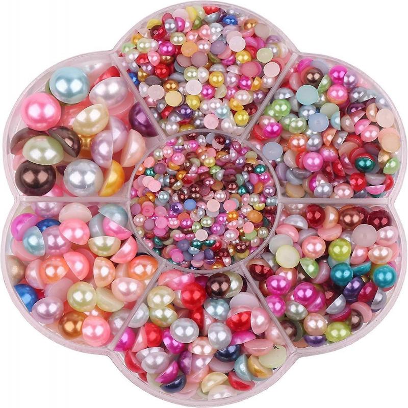 3000PCS 1 Box 7Sizes 2.5/3/4/5/6/8/10mm Flat Back Half Round Pearl Cabochon Bead Loose Beads Gem for Nail Craft Scrapbook DIY Decoration (Multi-Color)