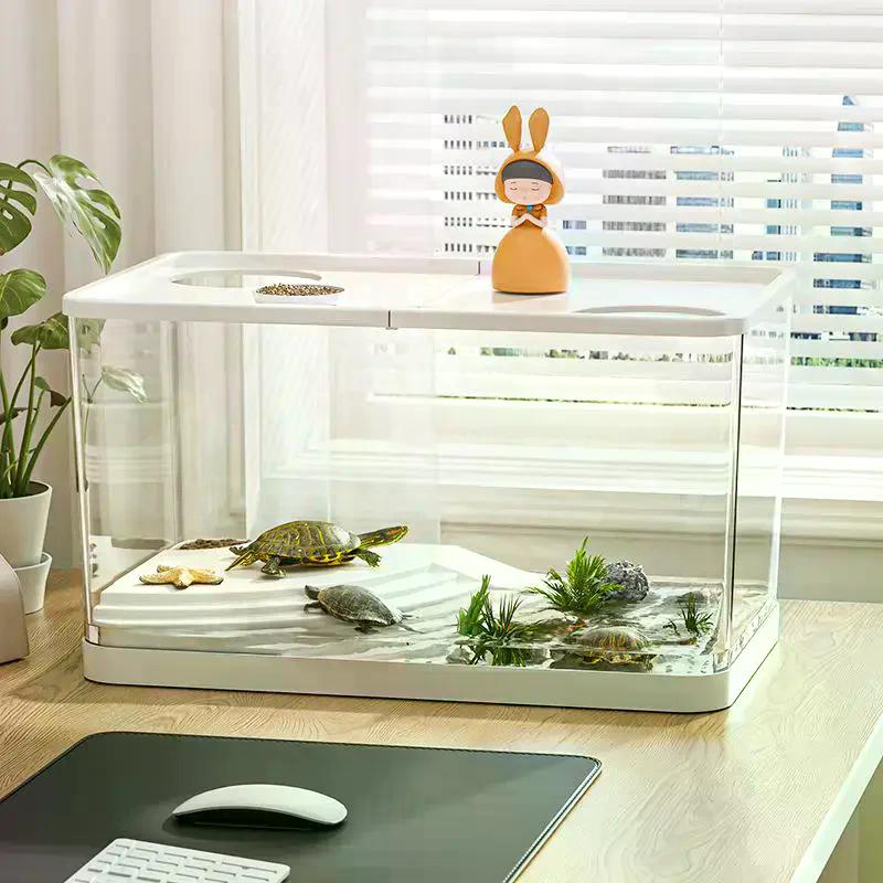PET New Transparent Mini Fish Tank Aquarium Drop Resistant Hydroponic With Lid Ecological Desktop Home Lazy Tank Turtle Tank