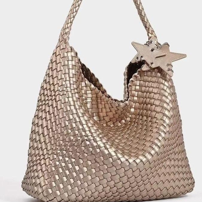 Champagne Color 2025 Super Popular Woven Tote Bag for Women Large Capacity High-end Handbag Shoulder Bucket Bag