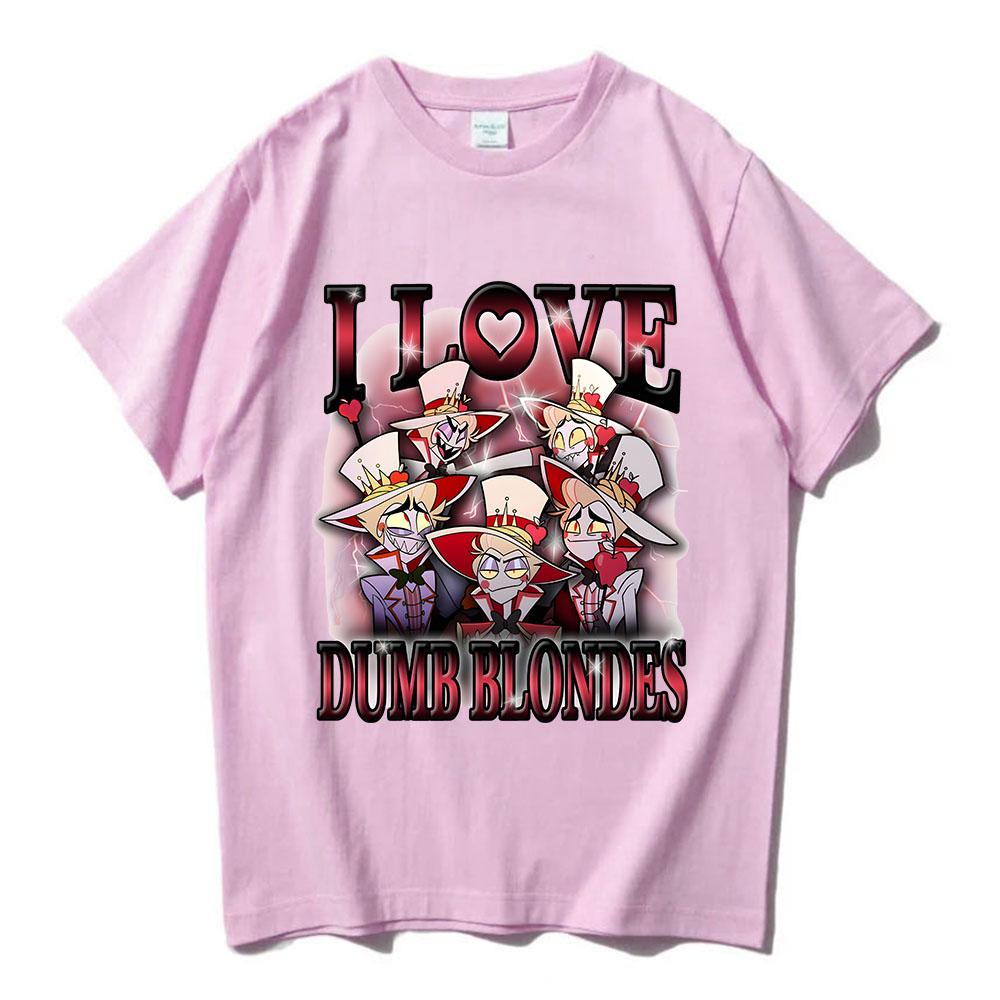 I LOVE DUMB BLONDES Lucifer Morningstar Tshirts Anime Helluva Boss Hazbinhotel Print T-shirt Cotton Male Short Sleeve T Shirts