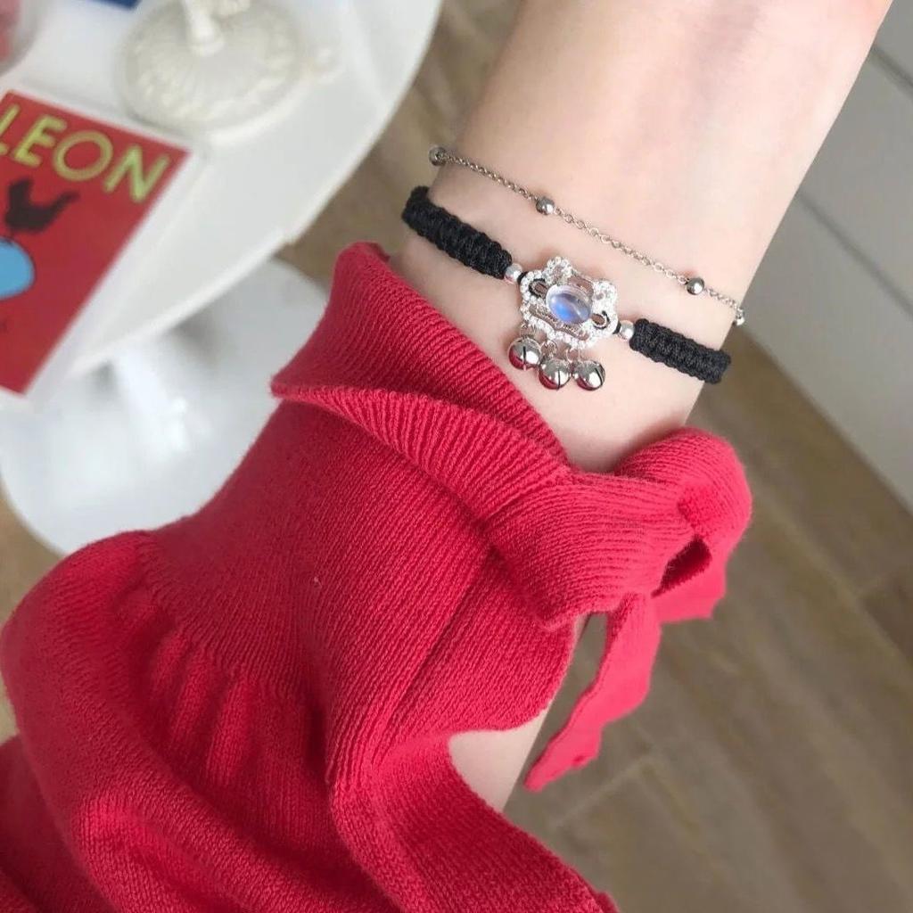 Moonstone safety lock bracelet female student Korean version retro woven black and red rope ins does not fade girlfriend gift