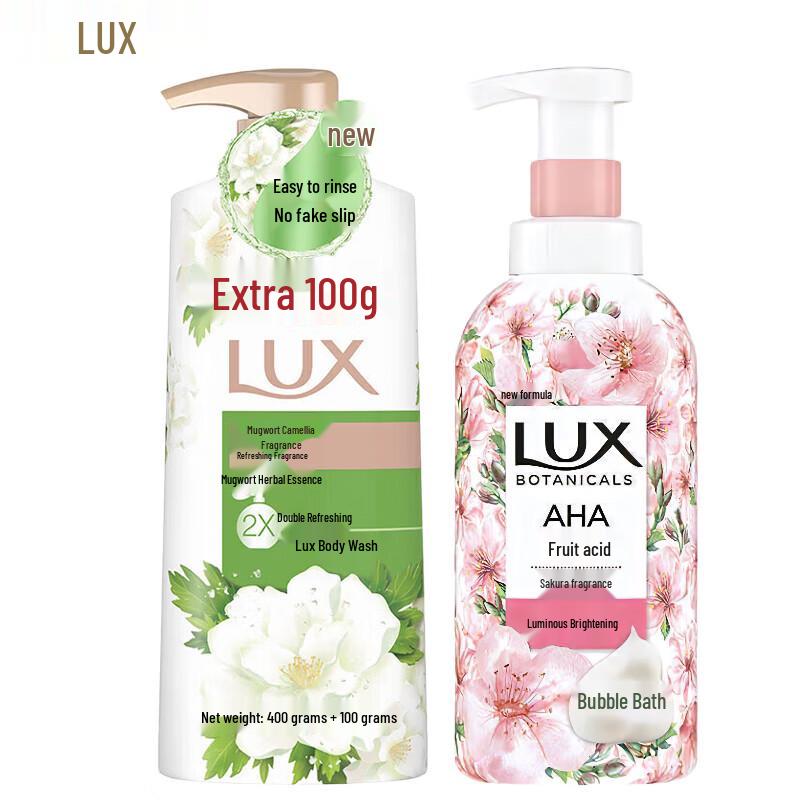 Experience a refreshing and cleansing shower with this LUX shower gel duo. Formulated for various skin types, this set includes both the invigorating Wormwood Camellia scent and the delicate Cherry Blossom scent. Made in Mainland China, it provides a pleasant body-freshening effect.