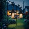 Solar-powered lantern light, hanging lantern with bulb, suitable for outdoor gardens, patios, lawns, and walkway decorations.
