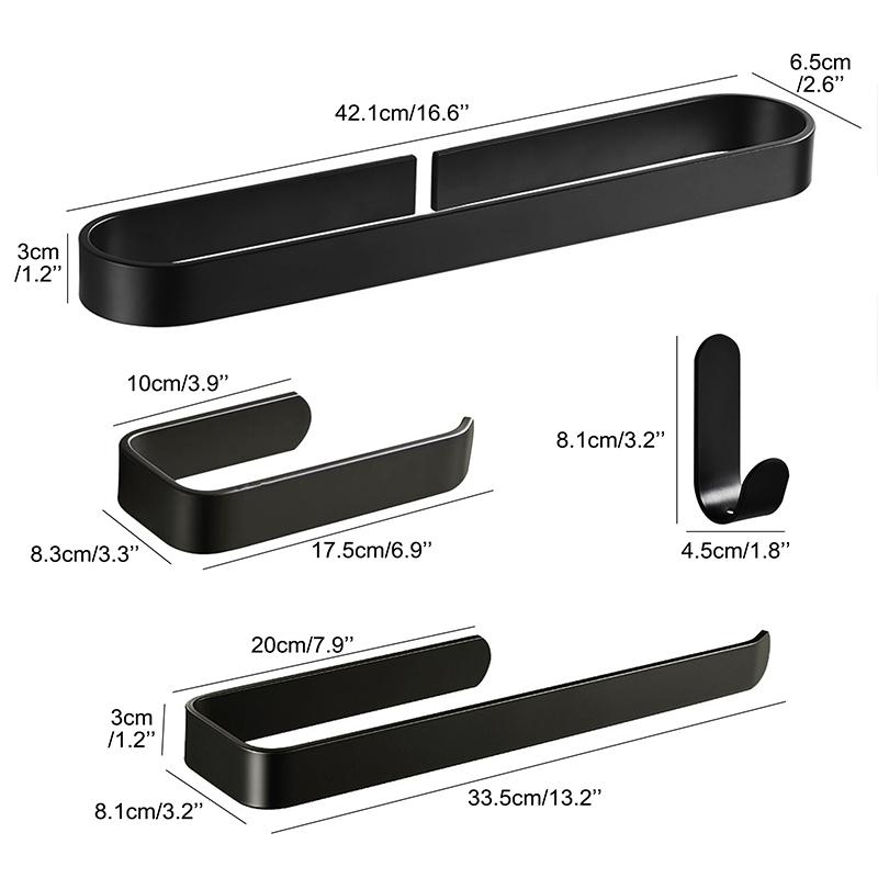 Black Bath Towel Holder Bathroom Towel Rack No Punch Towel Rail Rack Towel Holder Bathroom Storage Shelf EL65BB-1