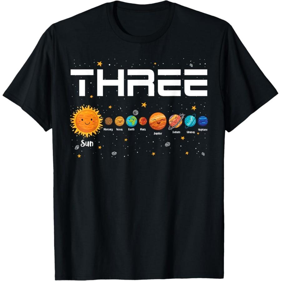 Solar System Planets Three 3 Years Old 3rd Birthday Girl Boy T-Shirt
