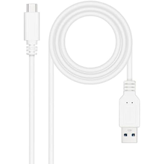 NANOCABLE 10.01.4001-L150-W - Câble USB 3.1, Gen2 10 Gbps 3A, USB-C mâle vers USB-A mâle, blanc, 1,5 m