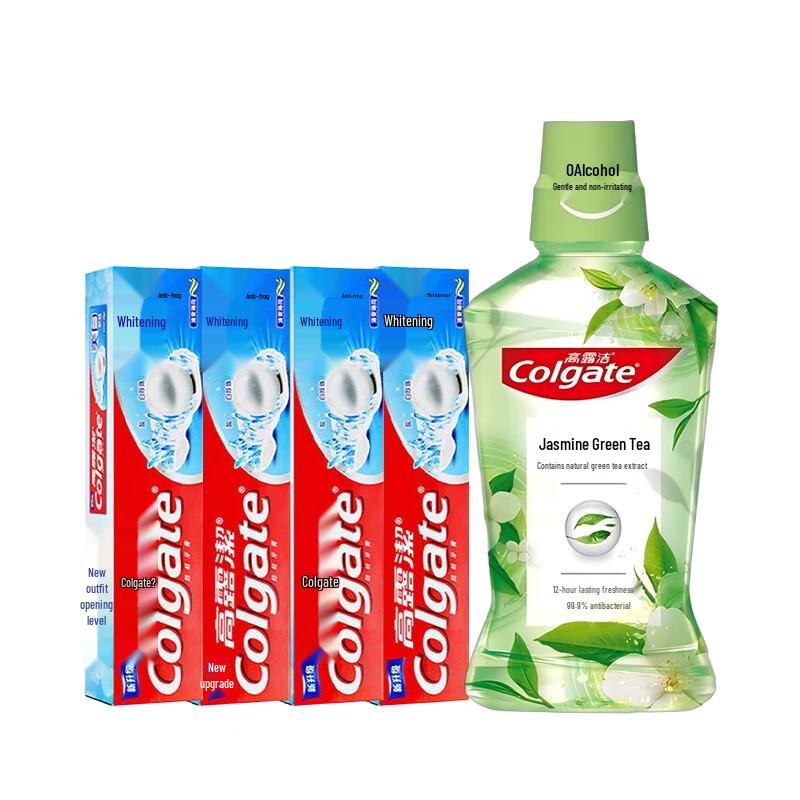 Colgate Cavity Protection & Whitening Toothpaste & Jasmine Green Tea Mouthwash Family Pack