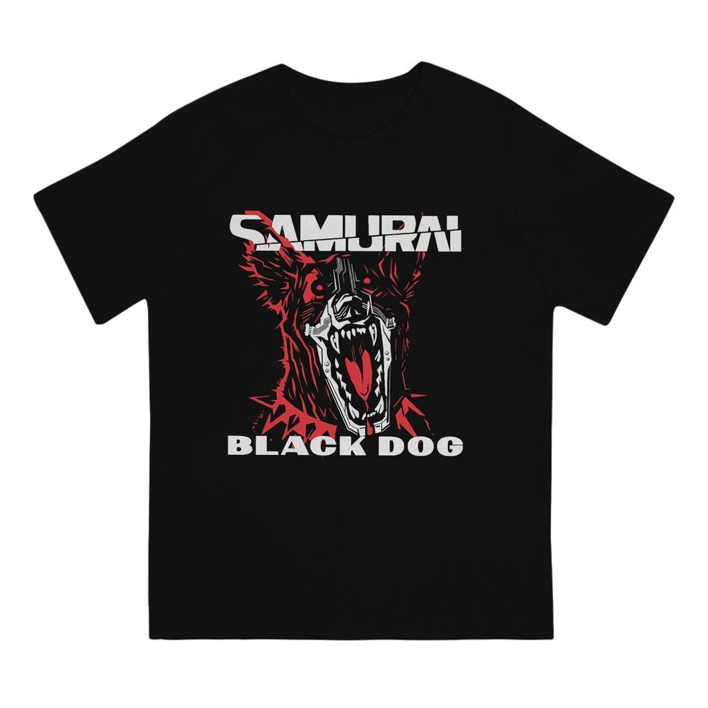 Black Dog T Shirt Pure Cotton Novelty T-Shirt Round Collar Cyber Samurai Punk Tee Shirt Short Sleeve Clothes Graphic Printed