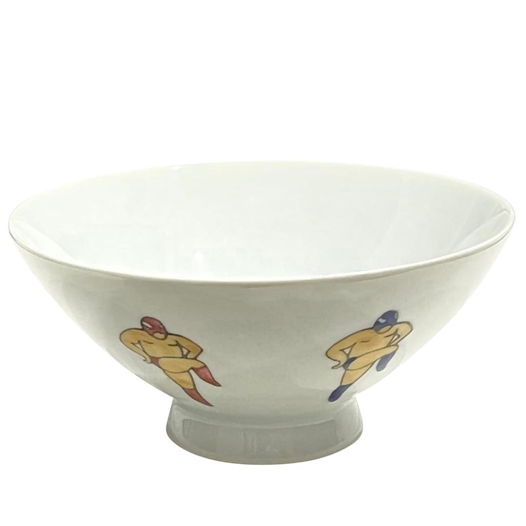24to3 Nishitomi Ceramics Arita Ware Rice Bowl, 15cm, Extra Large, Wrestler Line Dance Design, Made in Japan, 480444