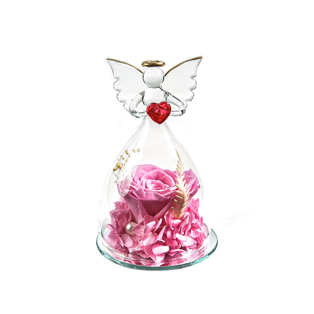 Birthday Angel Memorial Eternal Flower Immortal Rose Mother's Day Valentine's Day Gift Glass Dome Gift (Pink)