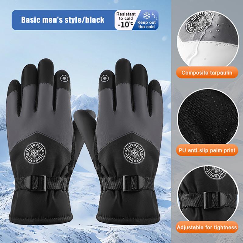 Winter Unisex Snowboard Ski Gloves Pu Leather Non-Slip Touch Screen Waterproof Motorcycle Cycling Fleece Warm Snow Gloves