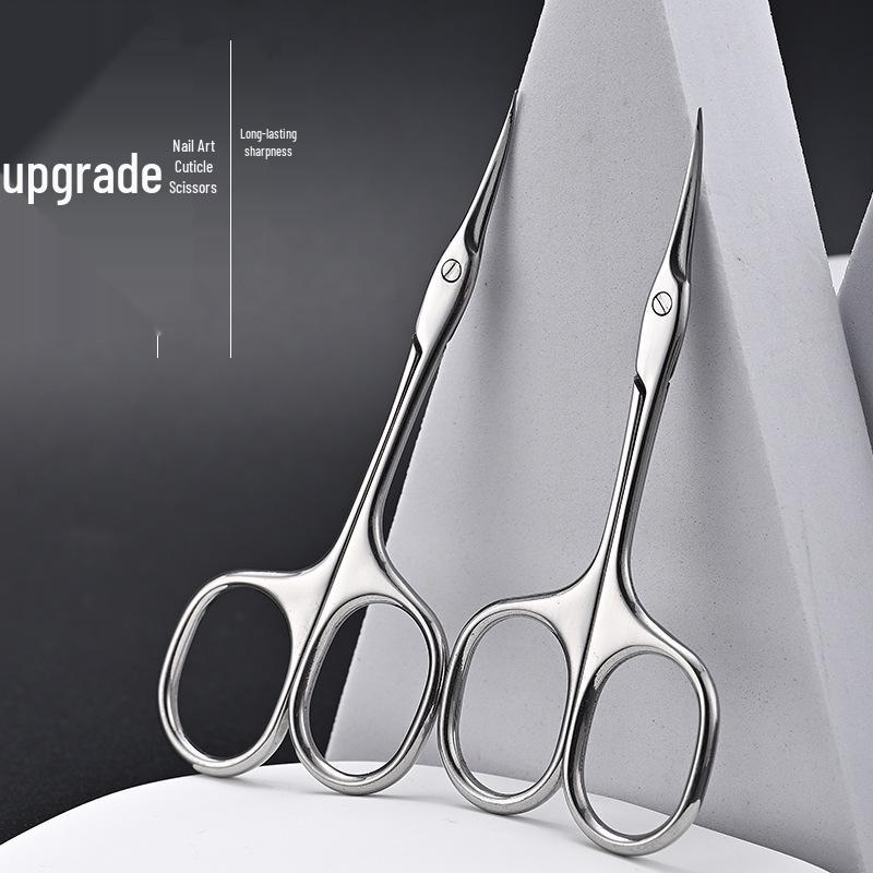 Professional Stainless Steel Cuticle Nippers with Curved Blades and Multi-Layer Ring, Small Scissors for Manicure