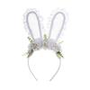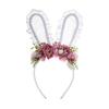 Bunny Headband Lace Bunny Ear Design Hair Hoop with Colorful Artificial Flowers Forest Style Easter