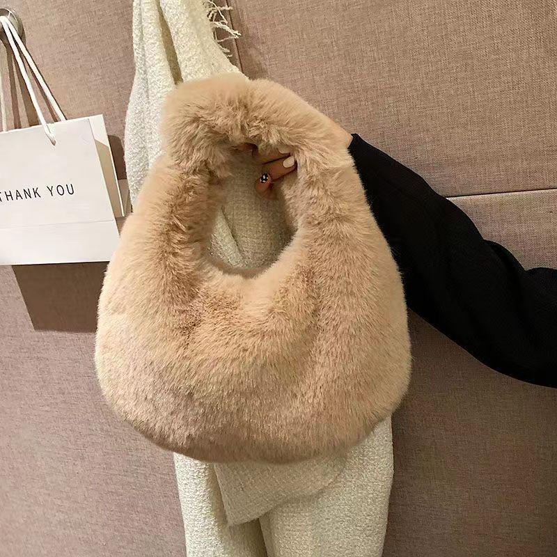 Versatile Fluffy Dumpling Bag: Faux Rex Rabbit Fur Furry Underarm Handbag