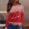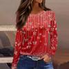 Moda damă ocazional cu tivul cu fante cu gât rotund, cu mânecă lungă, tricou imprimat largi Top pentru damă de Crăciun