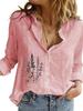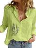 Women Fashion Cotton Linen Shirt Spring&summer Loose Top Ladies Casual Floral Print Blouse