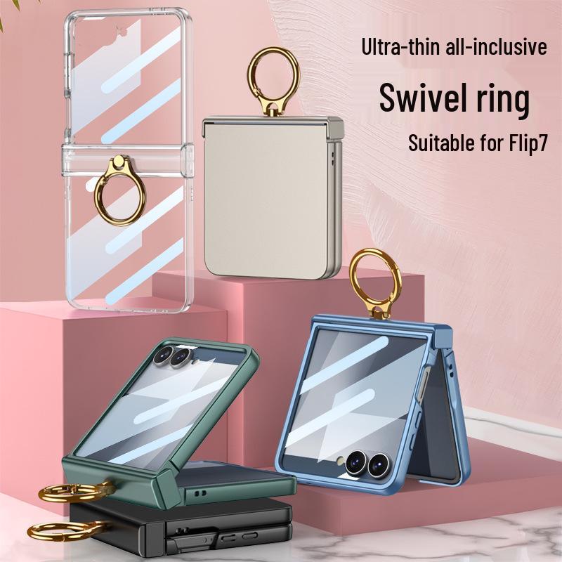 Samsung Z Flip7 Full-Cover Solid Color Case with Hinge Protection and Built-In Ring Stand