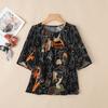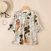 ZANZEA Bluză casual de damă cu gât rotund, mânecă scurtă, largă, cu imprimeu