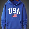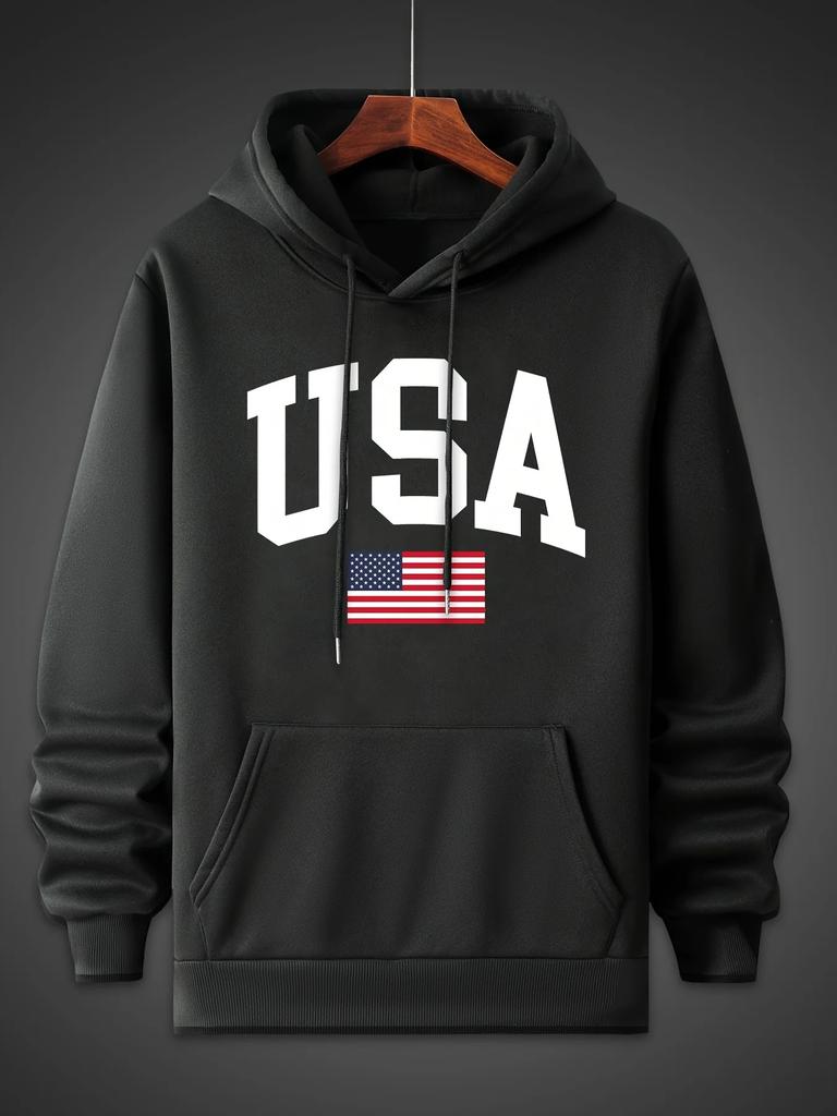 Men's Autumn and Winter Fashionable Casual Hoodie, Simple Printed American Flag, Comfortable Hooded Long-sleeved Sweatshirt