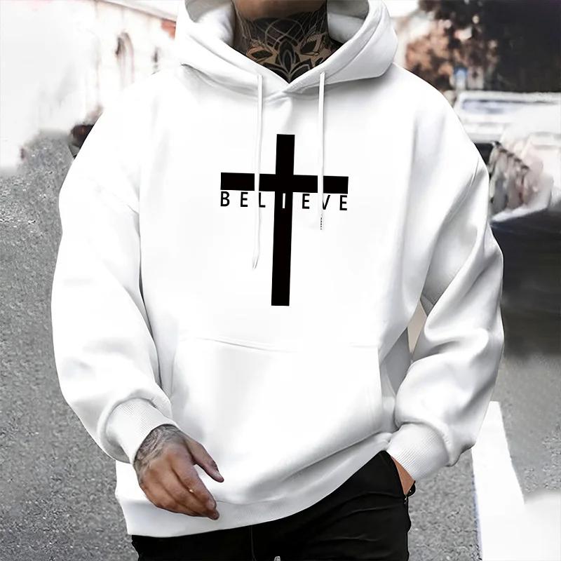 Jesus Cross Printed Men Hoodies Urban Casual Streetwear Fashion Hooded Sweatshirt Male Trendy 2025 Autumn Winter Hoody Outerwear