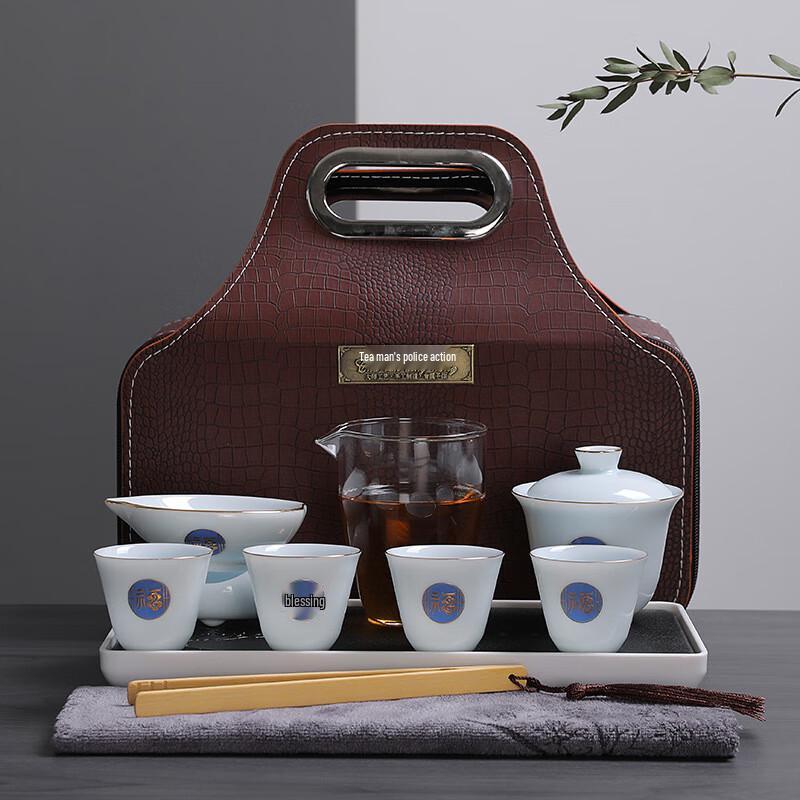 Chaxun Blue & White Porcelain Travel Gaiwan Set