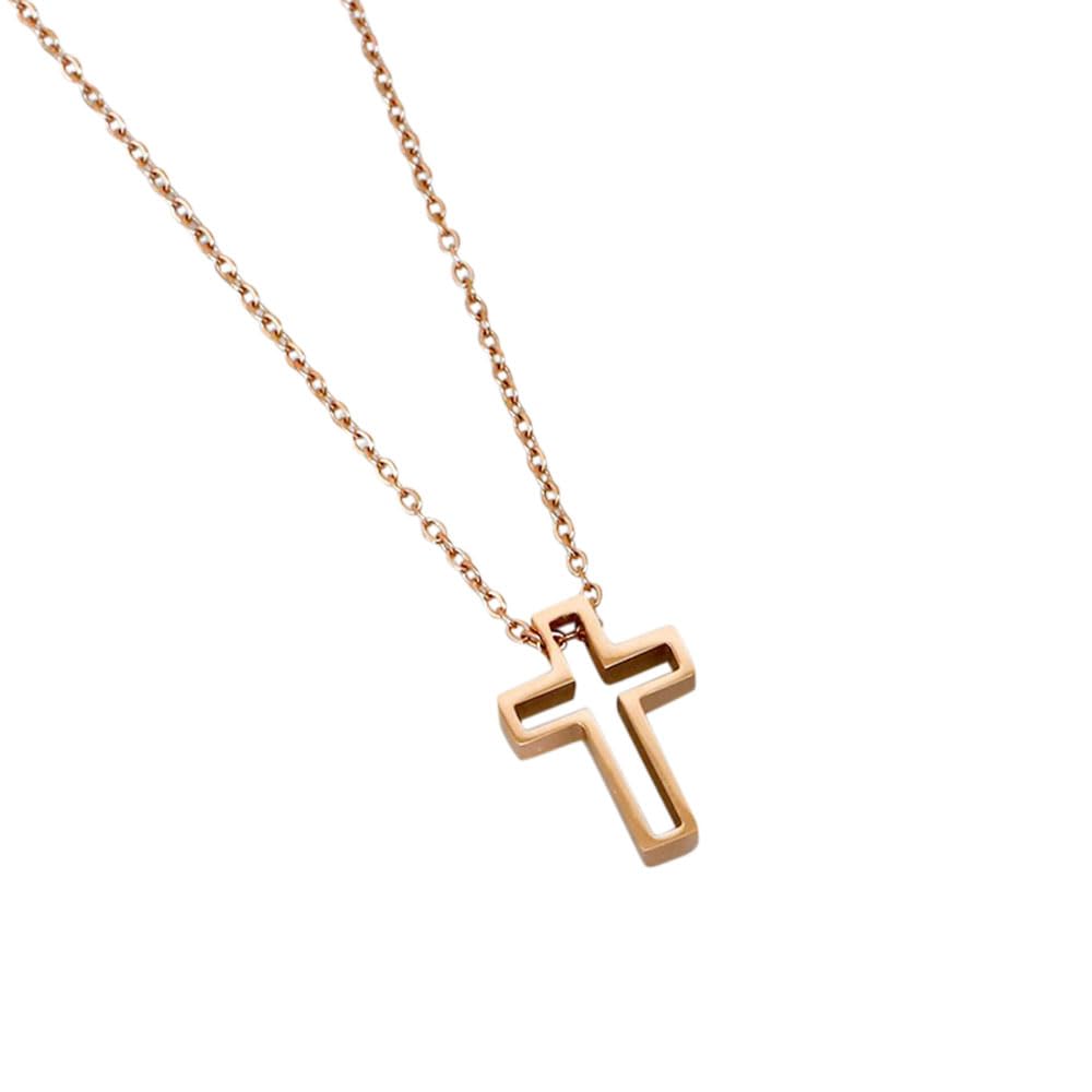 [mico.lor] Stainless Steel Necklace (197) Cross Pendant, Surgical Stainless Steel 316L, Hypoallergenic, Women's, Men's, Pink Gold