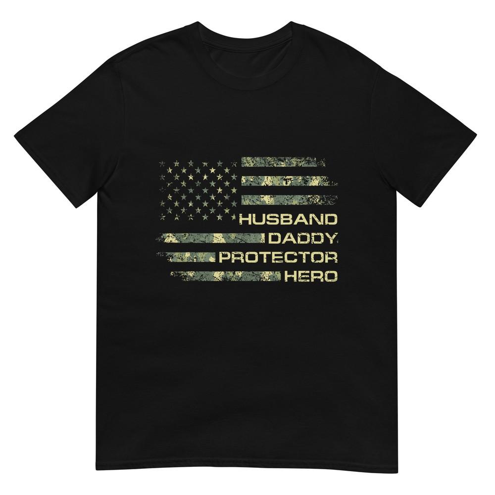 Husband Daddy Protector Hero Fathers Day Camo American Flag T-Shirt
