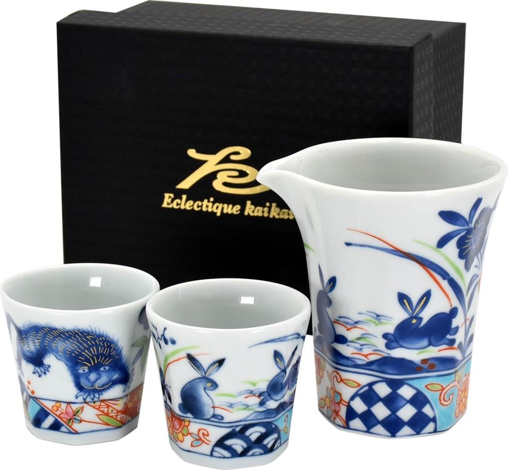 Set Sake Ceramic Ai Yumin Iepure/Leu Mărime: Aproximativ. L17 A13.5 Î9.2 41076