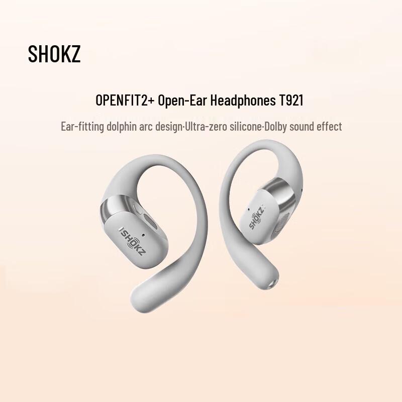 Experience ultimate comfort and awareness with the Shokz OpenFit 2+ T921 open-ear Bluetooth headphones. Designed for sports enthusiasts, these ear-hook wireless headphones provide a secure fit and excellent sound without blocking ambient noise, making them ideal for running, cycling, and other activities. Enjoy immersive audio with Dolby Atmos certification and extended listening times thanks to ultra-long battery life. With IPX5 water resistance and IP5X dust resistance, they are built to withstand your toughest workouts.