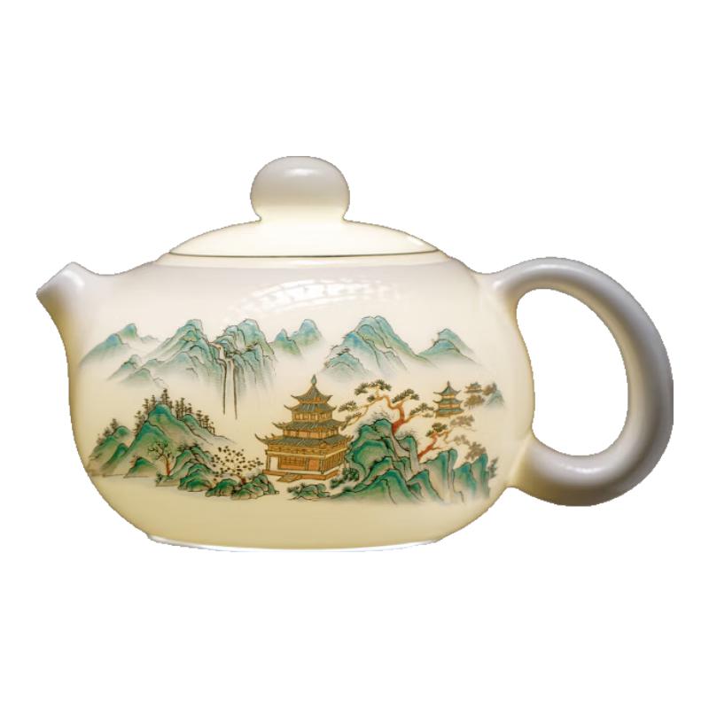 Gold Inlaid Jade Porcelain Xishi Teapot