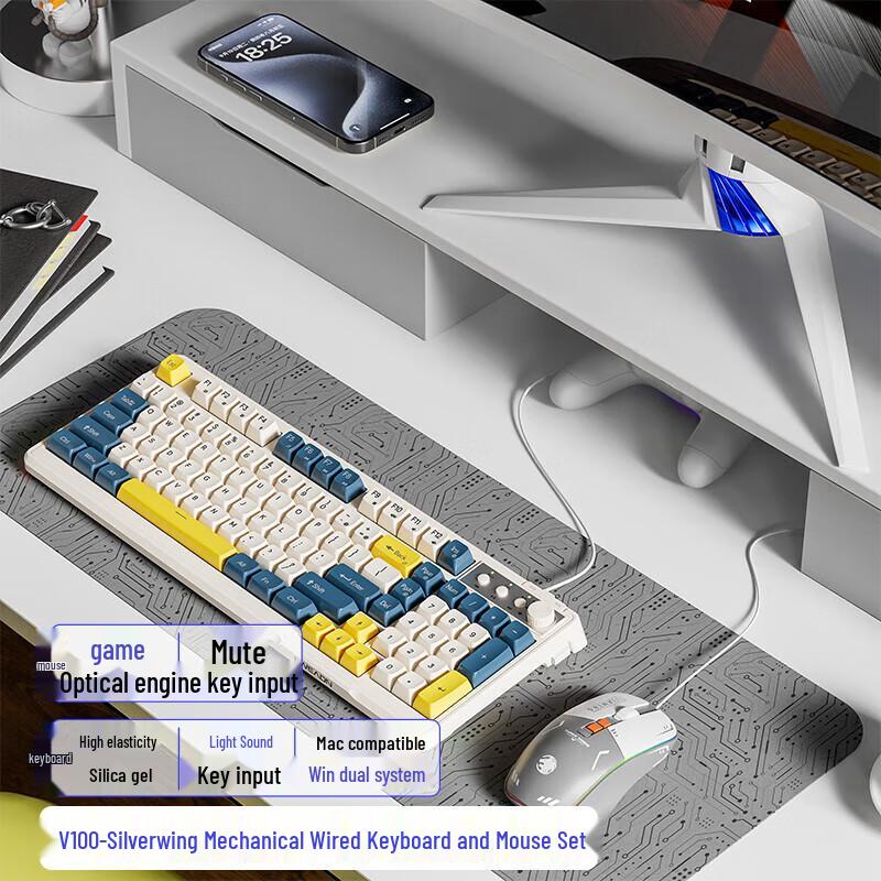 Qisha V100 Silver Wing Mecha Gaming Wired Keyboard Mouse Combo