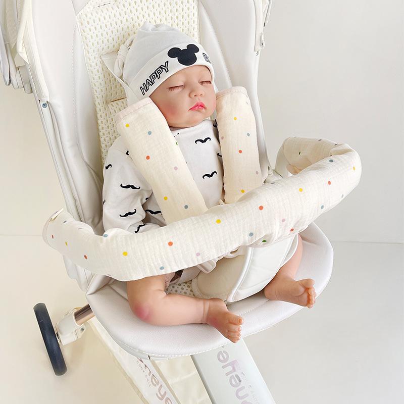 3pcs Set Baby Stroller Armrest Cover Cotton Gauze Shoulder Strap Drool Towel Baby Stroller Handle Cover Stroller Accessories