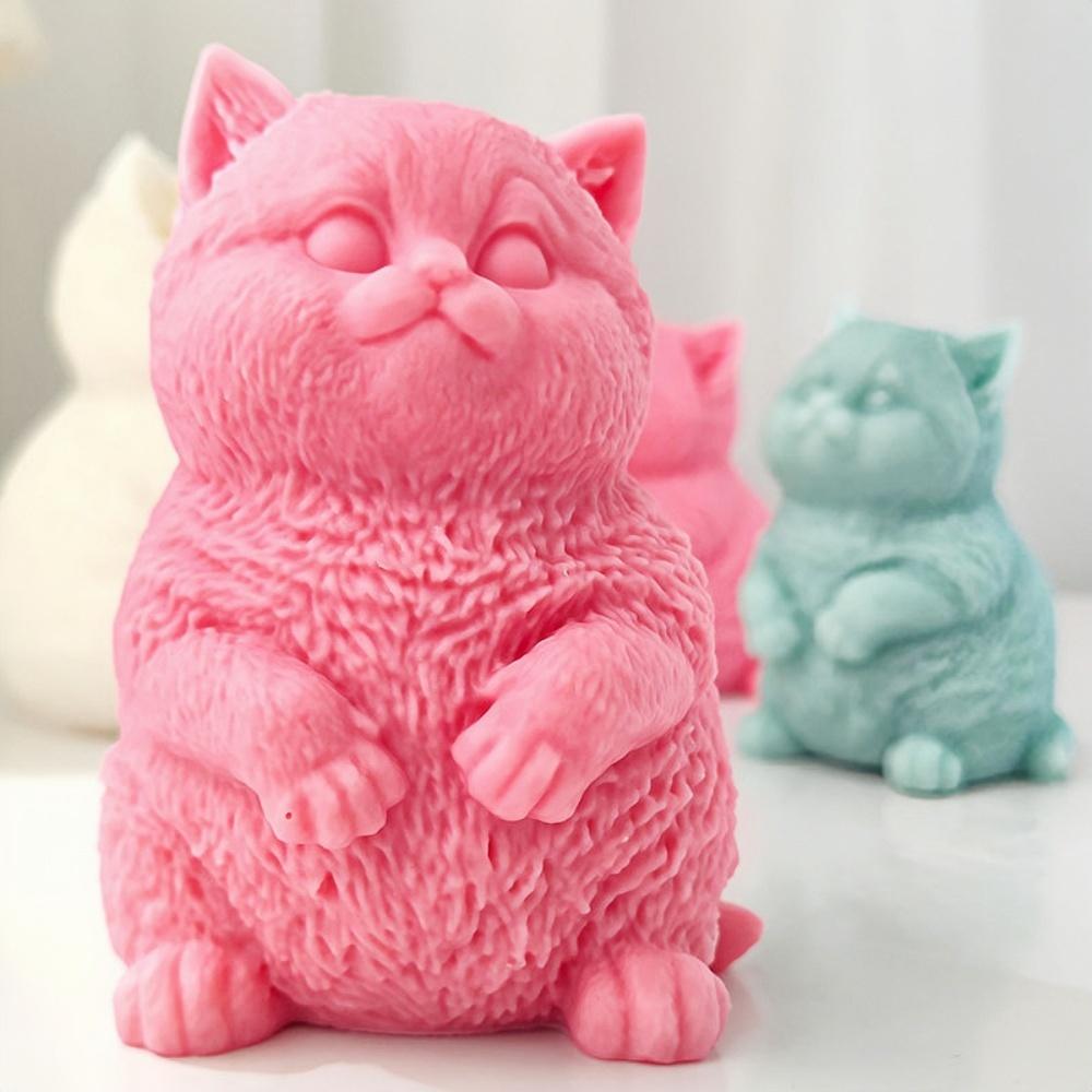 3D Fat Cat Candle Silicone Mold Handmade Cute Size Sitting Cat Aromatherapy Candle DIY Toy Cake Mold Gypsum Resin Ornament Gift