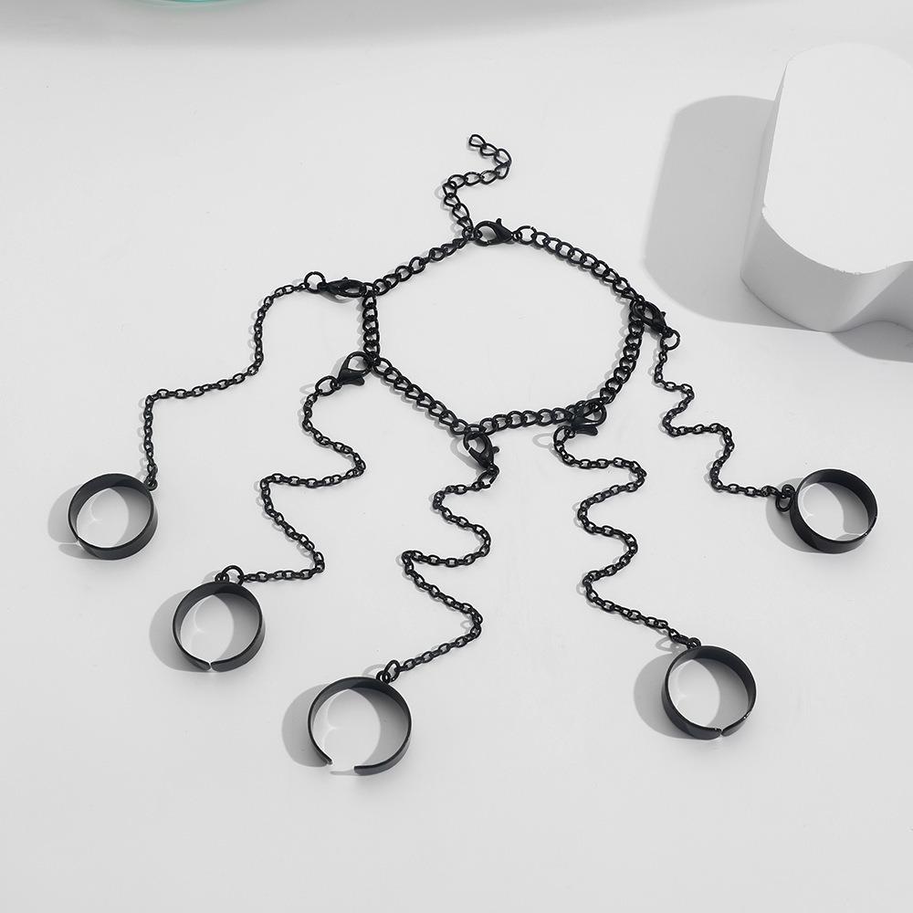 Punk Wrist Bracelet Gothic Open Rings Set Ins Chain Link Ring Couple