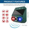 1.Intelligent dual-spectrum deterrence: Specifically designed for animals that are active at dawn and dusk. The device automatically senses changes in light and starts up in low-light conditions, alternately emitting high-brightness red and blue light (simulating a flame effect). Combined with ultrasonic waves, it effectively drives away various disturbing animals and protects the safety of your garden, courtyard, farm, vegetable plot, garbage area, and poultry and pets (chickens, rabbits, cats, dogs, etc.).