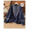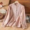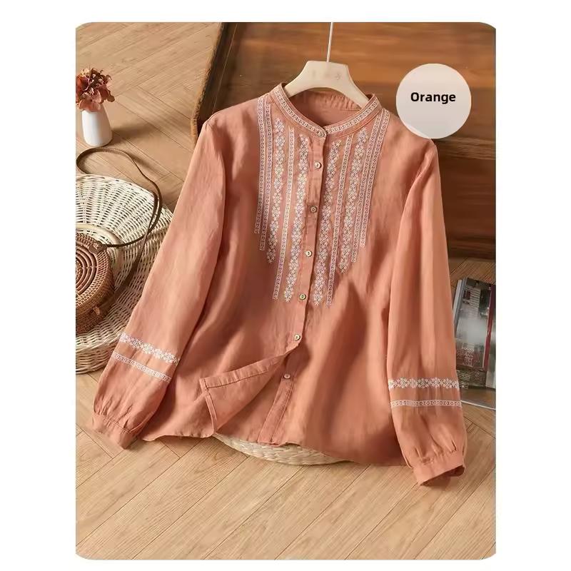 Women's Retro Artistic Embroidered Cotton Linen Stand Collar Loose Long Sleeve Women's Shirt Spring Style Top