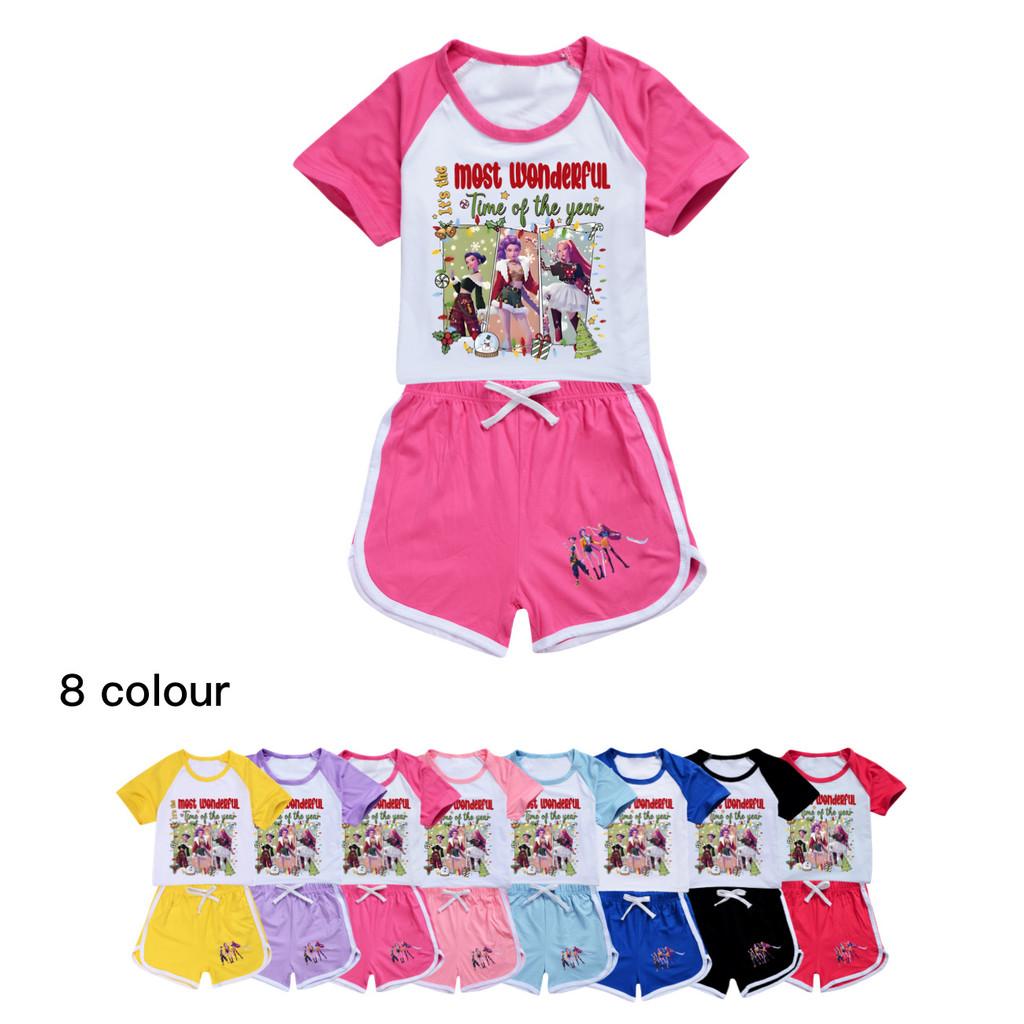 5096 Kids Girls Christmas POP Rumi Zoey Mira Print T-shirt Shorts Sport Tracksuit Clothes Set
