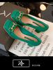 Foreign design temperament green high heels women's 2025 new thick heel Mary Jane small leather shoes square head single shoes