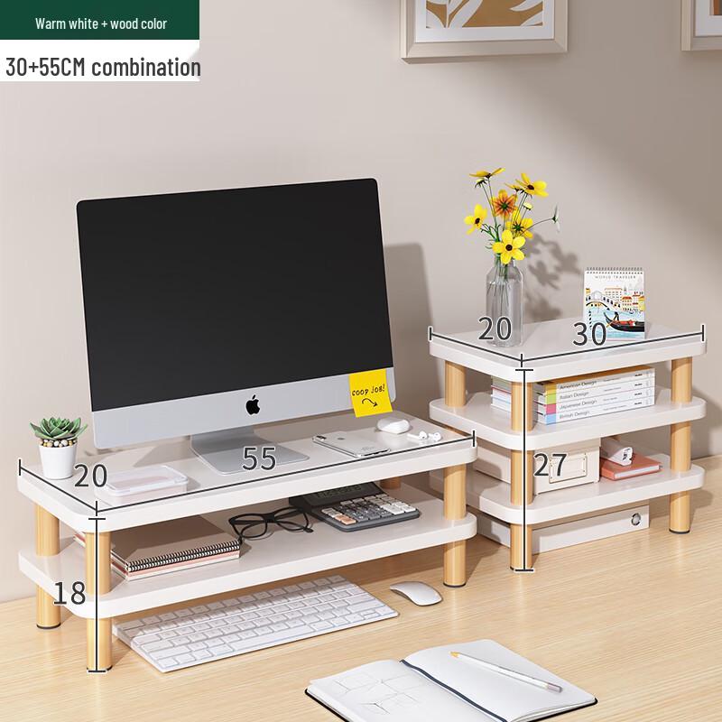 Warm White Multi-Tier Laptop Riser with Storage