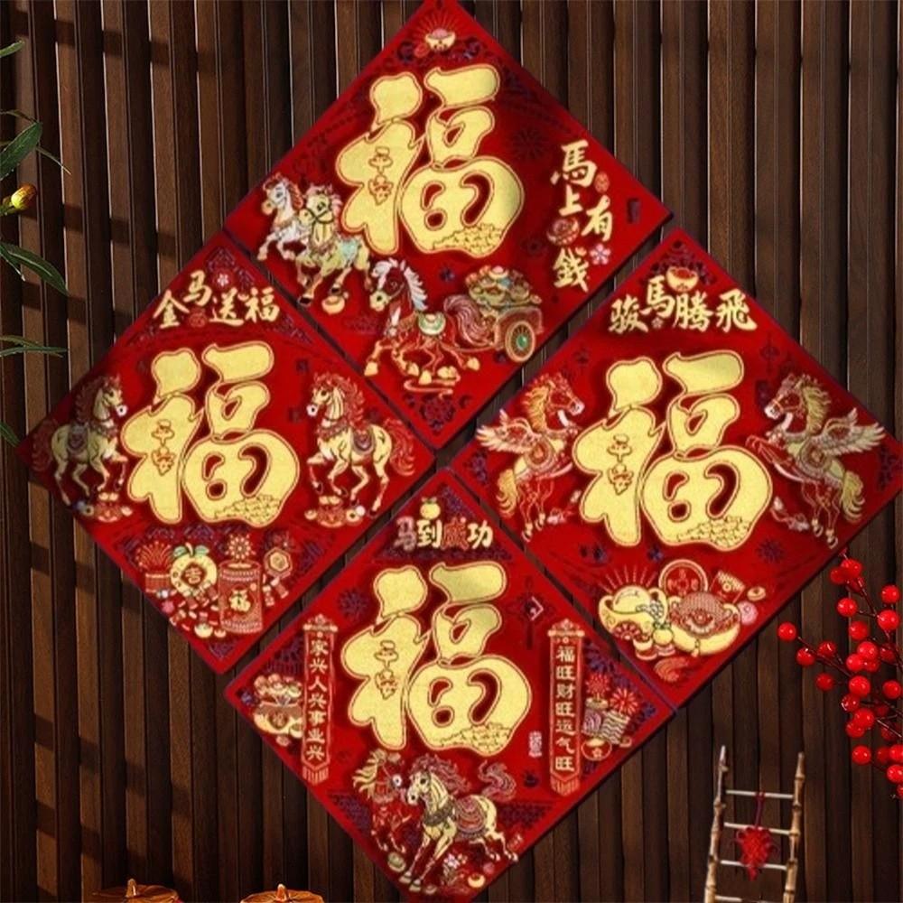 3D Flocking Fu Character Sticker Self-adhesive New Year Door Sticker Spring Festival
