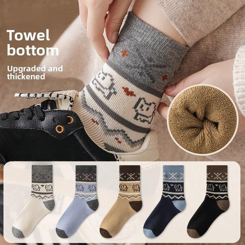 Female Autumn and Winter Plus Velvet Thickening Anti Cold Hair Ring Warm Soft Waxy Skin Friendly Floor Tube Socks