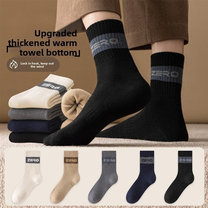Male Autumn and Winter Plus Velvet and Thick Hair Ring Skin Delicate Towel Bottom Sleep Anti Pilling Tube Socks